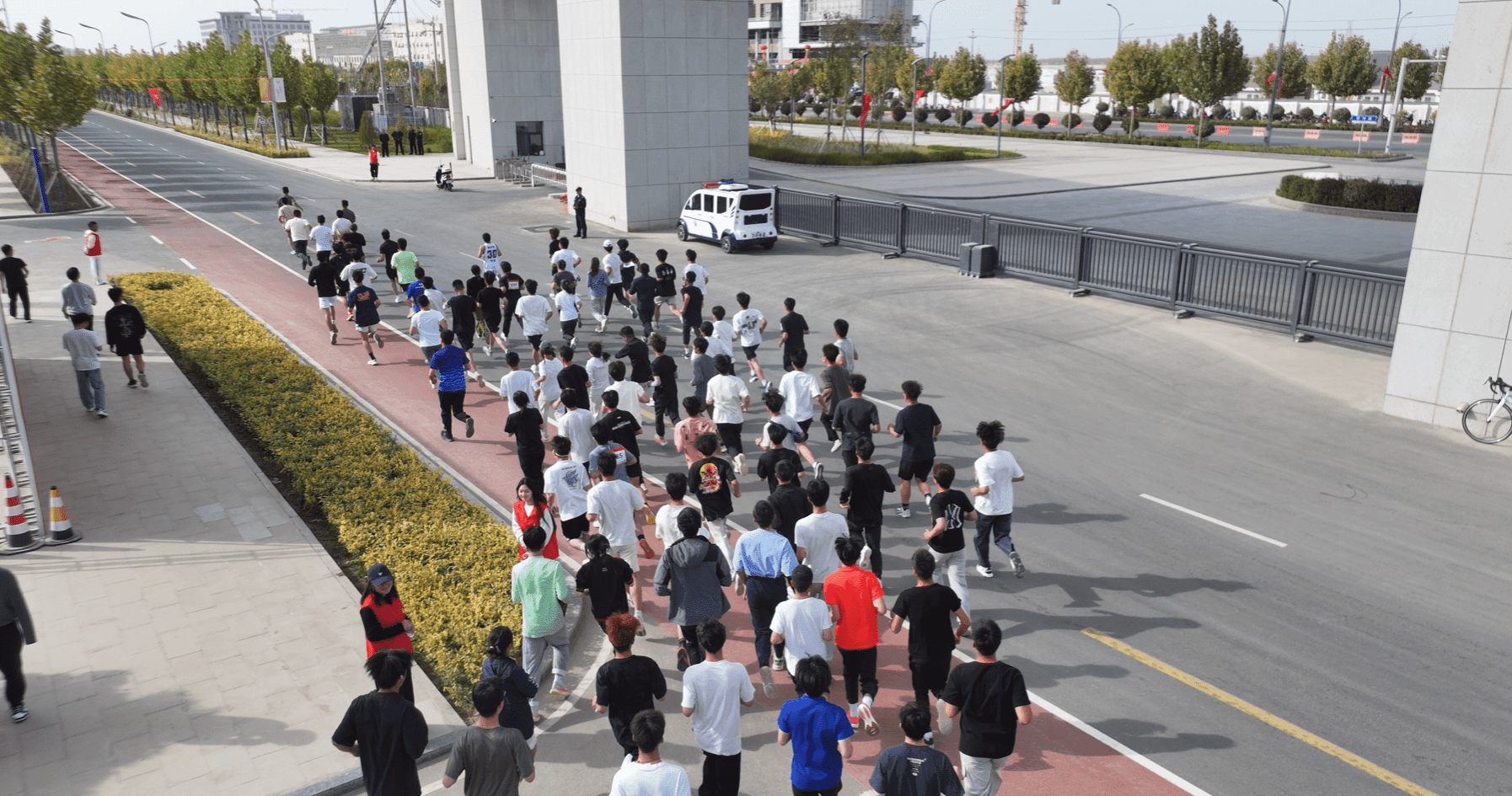 两千余名师生汇聚一堂,用激情和汗水点燃了整个校园,构成了一道充满激情与活力的流动风景线。