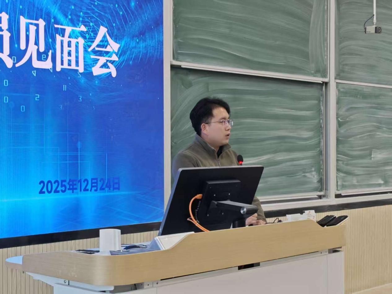 指导老师贾沂伟以学生科创项目培育为主题展开分享。他围绕选题方向、项目推进与能力培养三个方面进行讲解,鼓励同学们关注社会需求与科技前沿,结合兴趣开展有价值、可持续的科创探索,并注重培养创新思维、团队协作与时间管理等综合能力。