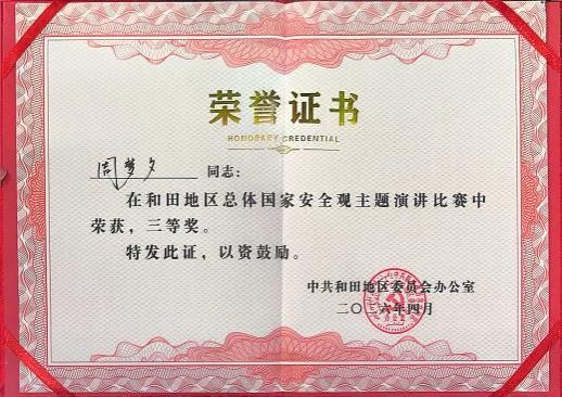 喜报!我校学子周梦夕在和田地区总体国家安全观主题演讲比赛中荣获三等奖