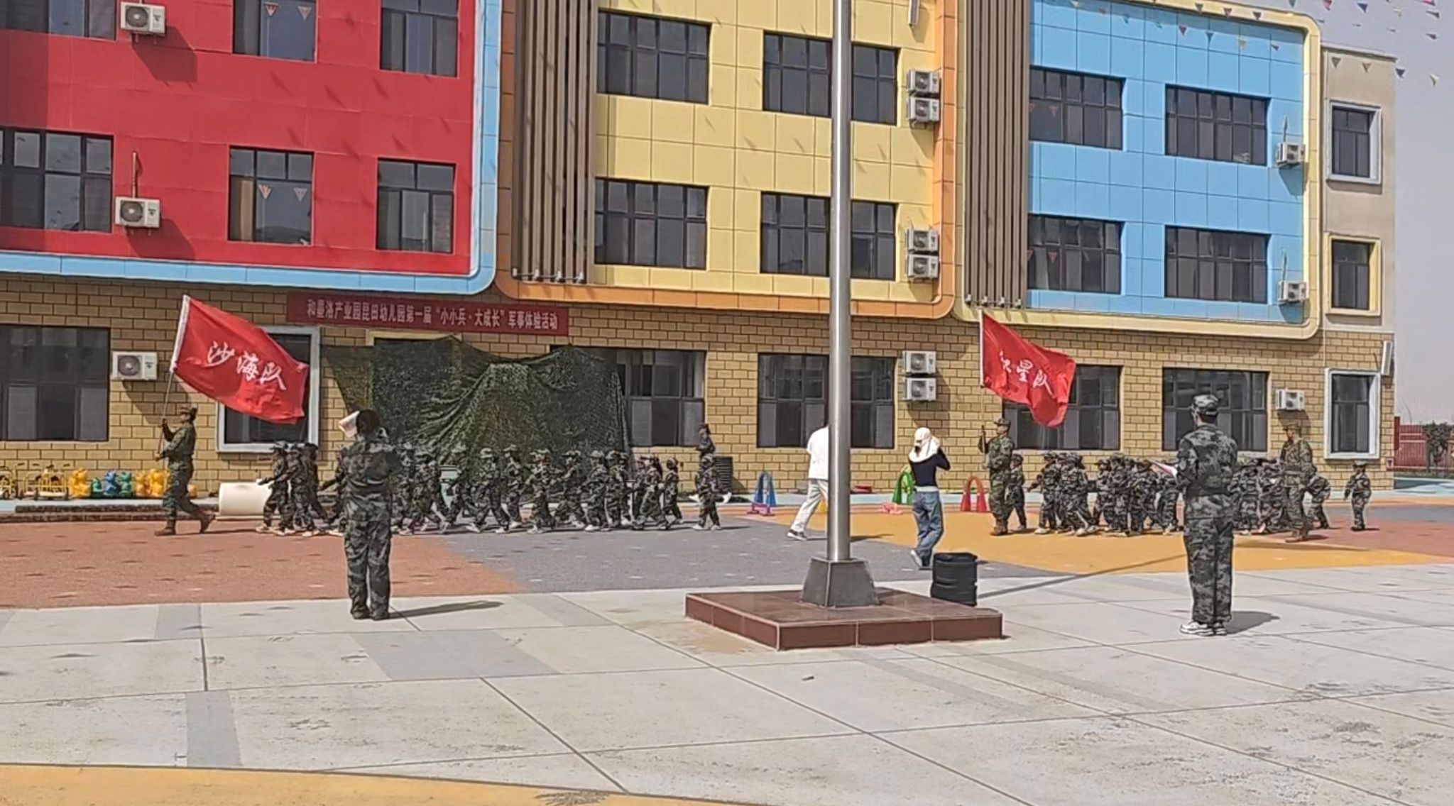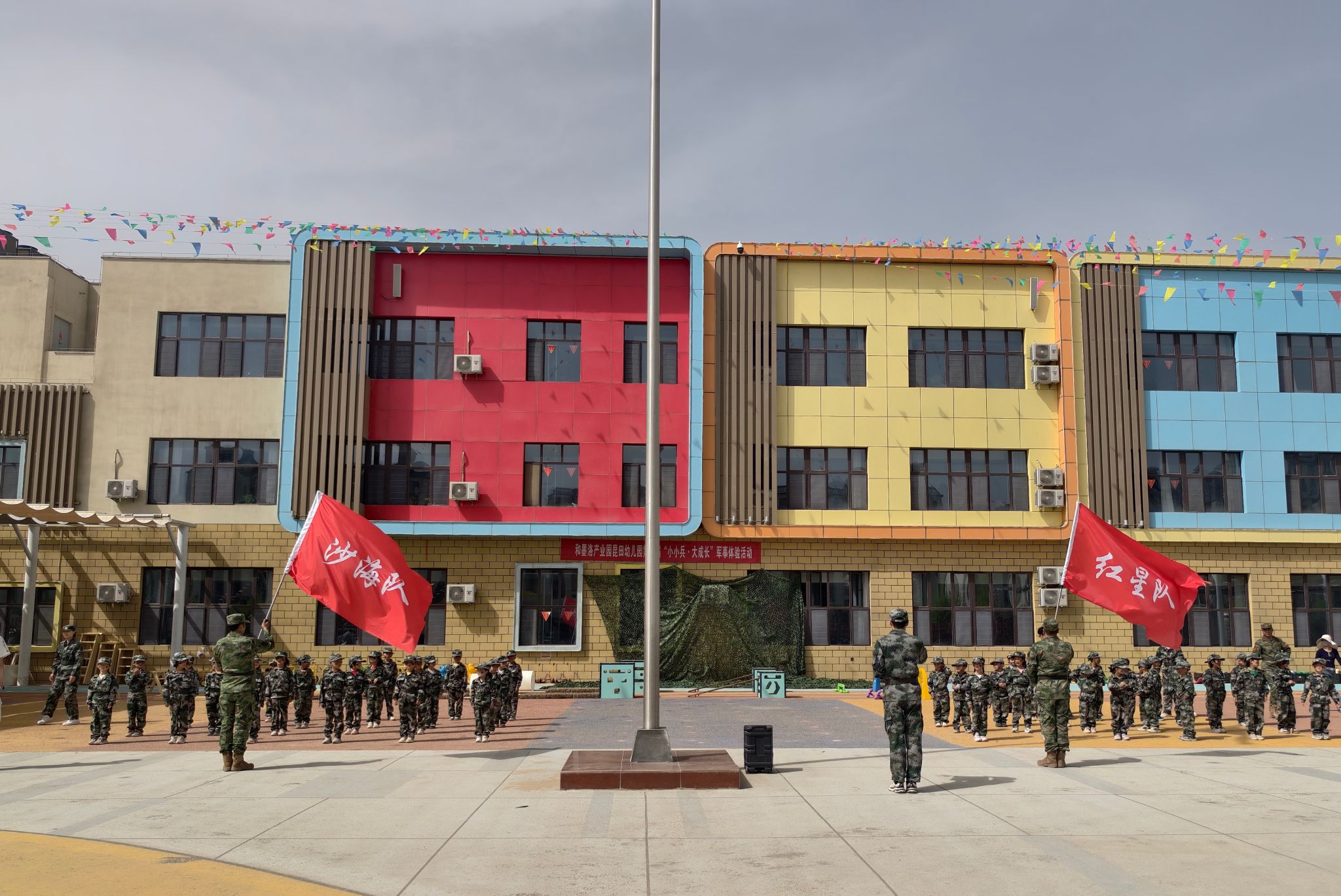 为厚植爱国主义情怀,强化国防启蒙教育,4月17日,新疆工业学院“理响昆仑”大学生理论宣讲团、大学生国旗护卫队走进和墨洛产业园昆田幼儿园,参加“小小兵 大成长”军事体验活动结业仪式,以青春力量为萌娃们的军事体验之旅画上圆满句号。