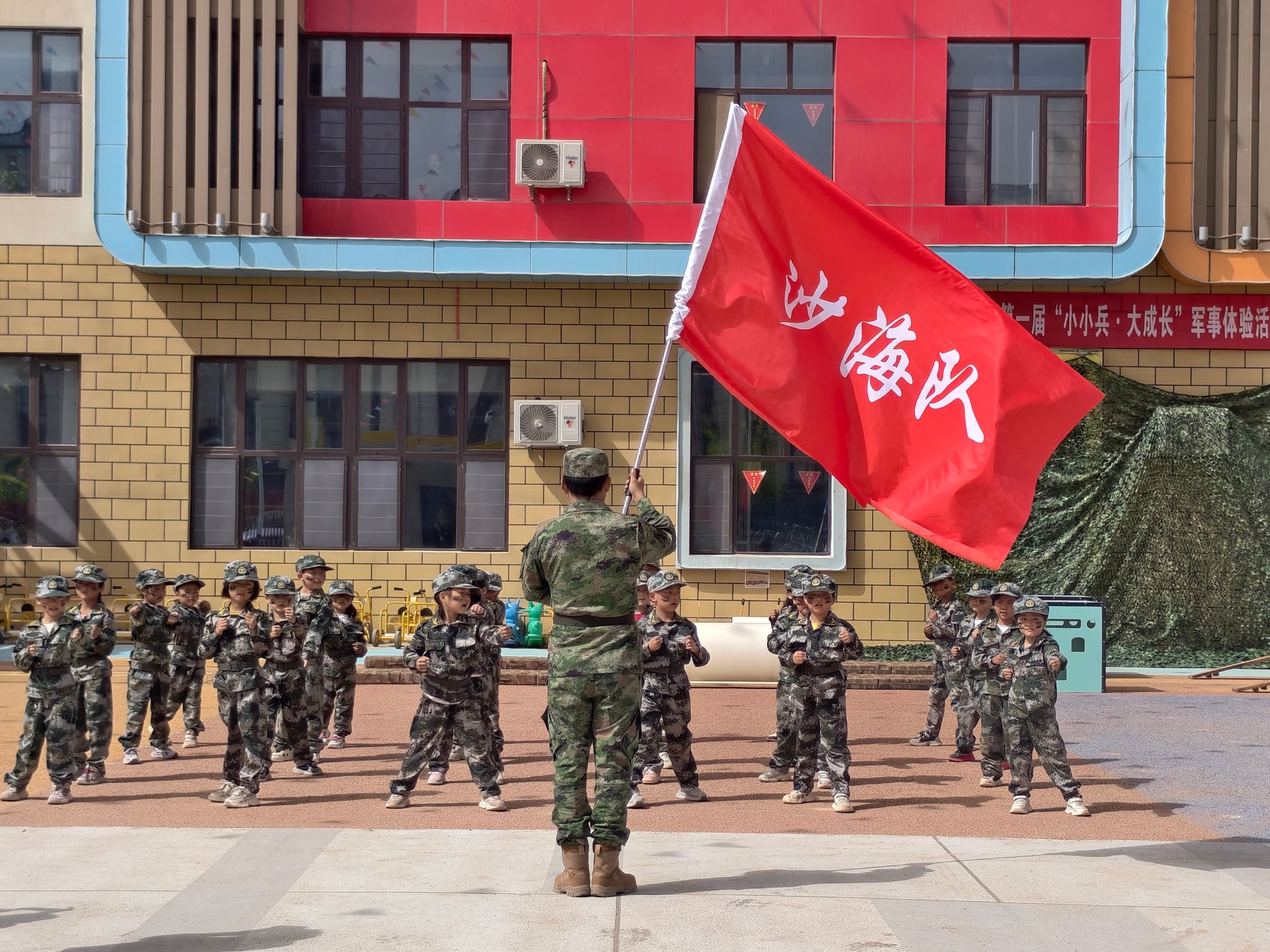 在热烈的氛围中,幼儿园小朋友们高喊口号、踏着整齐步伐有序入场。在教官的指导与保护下,孩子们化身勇敢的“小小兵”,认真完成障碍穿行挑战,在趣味实践中锻炼体魄、磨炼意志,深刻体会纪律的意义与团队协作的力量。