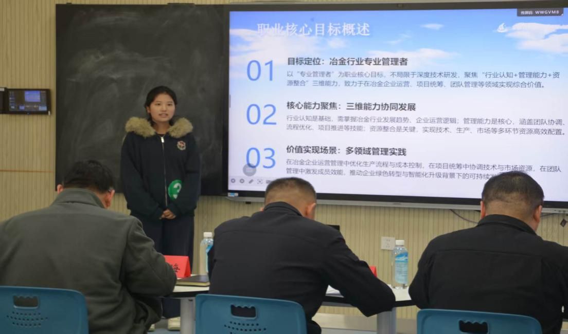 本次院赛共有19名选手同台竞技。在个人展示环节,选手们围绕自我认知、职业环境分析、目标制定与实施路径等方面,展开清晰而富有逻辑的阐述,展现出新能源与矿业学子扎实的专业素养与昂扬的精神风貌。