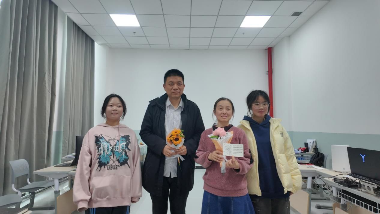 最暖的环节来啦!同学们捧着包装好的花束,跑到老师办公室当面送礼物~老师接过花时眼睛都亮了:有的笑着和同学聊课堂趣事,有的当场拍照留念——这画面,谁看了不开心?