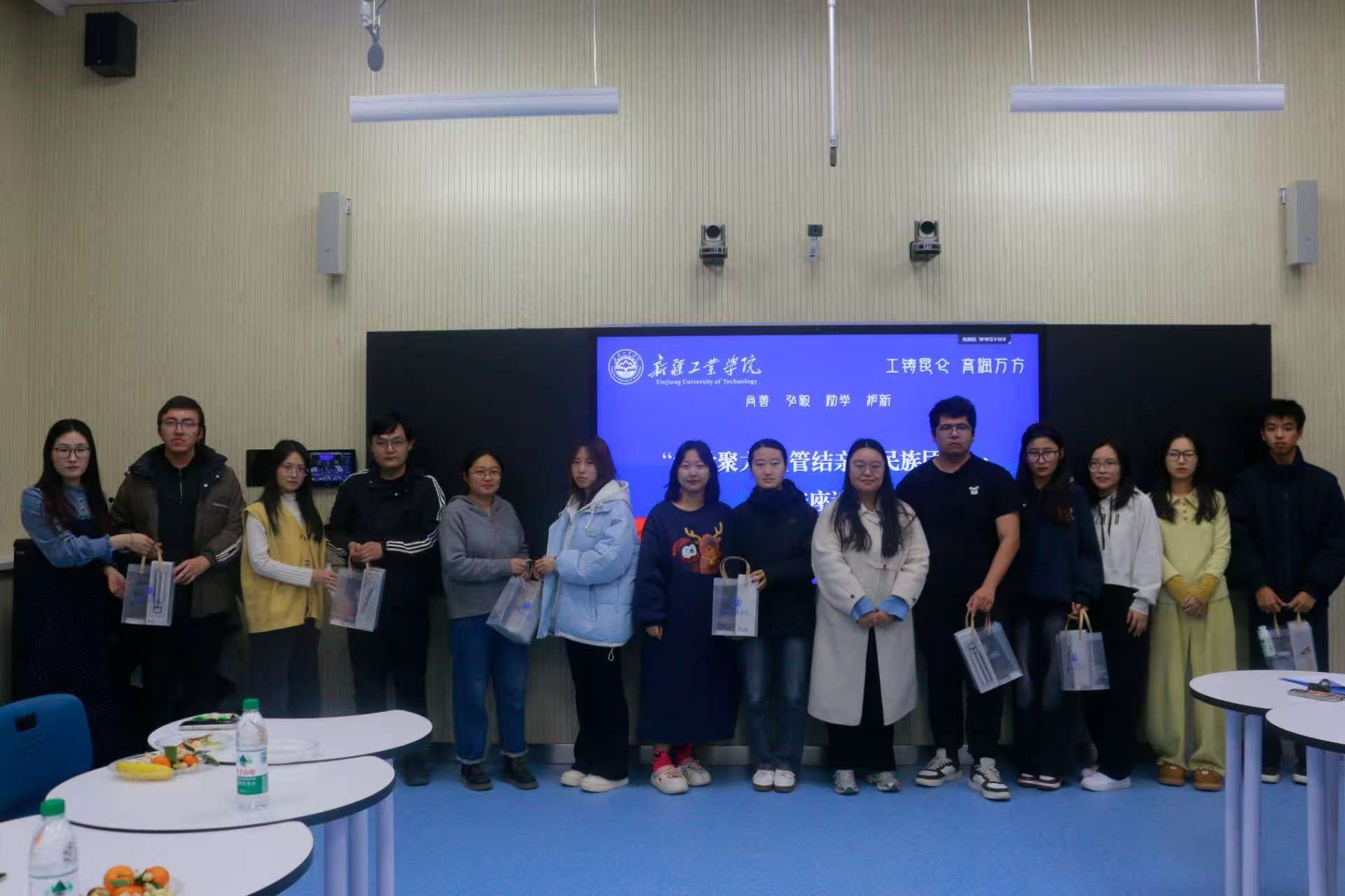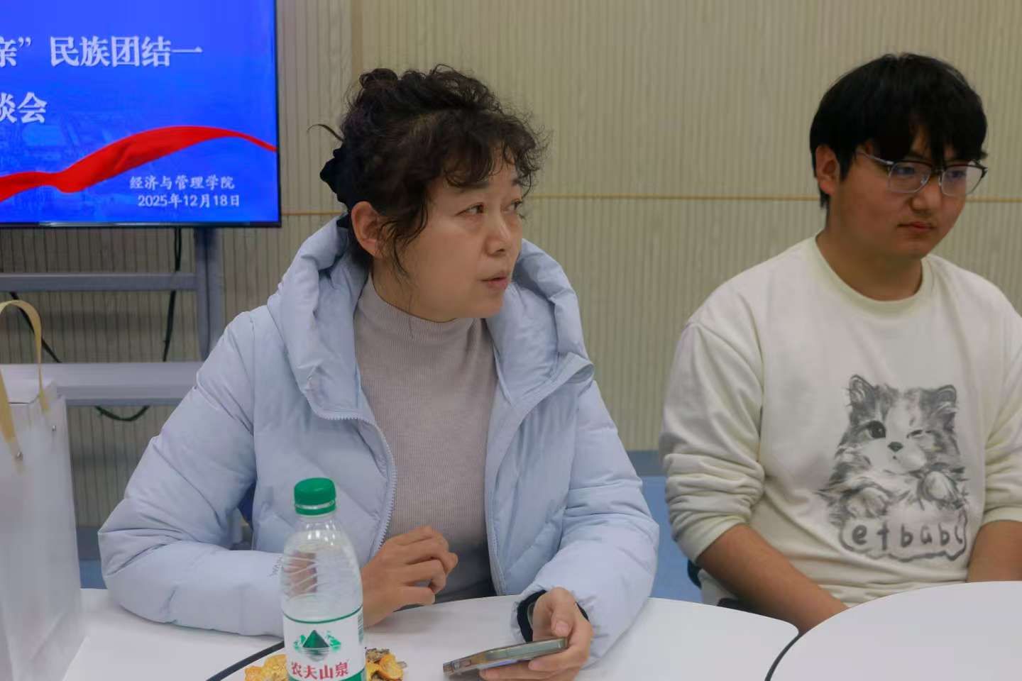 为筑牢校园民族团结根基,搭建师生互助共育桥梁,让各民族师生像石榴籽一样紧紧相拥,经济与管理学院于2025年12月18日晚在A3-A118智慧教室举办“民族团结一家亲”交流活动。工会(妇联)副主席刘爽,学院党委副书记赵海伟,学办主任侯骏豪,辅导员杨婷及26对结亲师生共同参与活动。